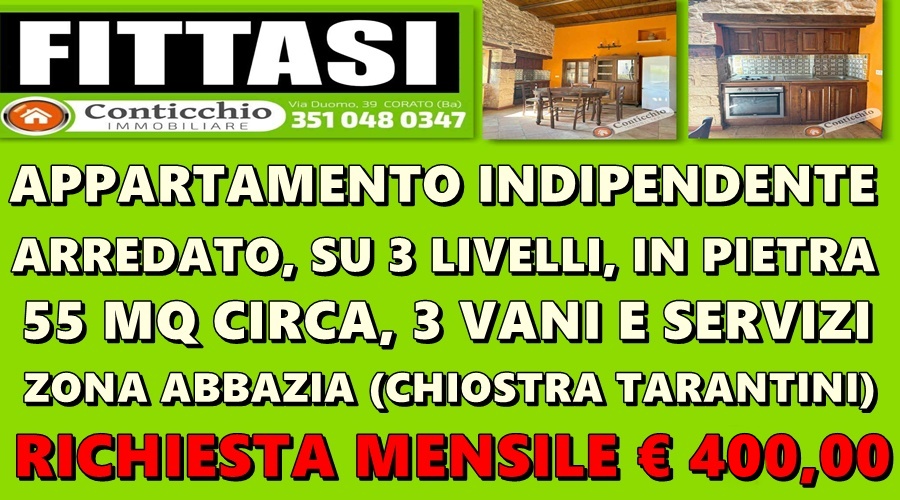 ‼️📣 Conticchio Immobiliare Fitta 🗣‼️: 🏢 Appartamento Indipendente, arredato, in pietra, su 3 livelli collegati tra loro da scale a chiocciola, 🔲 di 55 mq circa, 📍 zona Piazza Abbazia (Chiostra Tarantini).