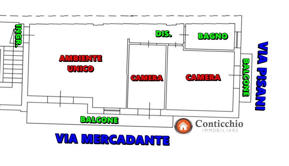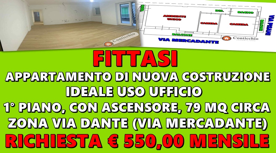 ‼️ Conticchio Immobiliare Fitta ‼️: Appartamento di Nuova Costruzione, angolare, di 79 mq circa, 1° piano con ascensore, zona Via Dante (Via Mercadante).
