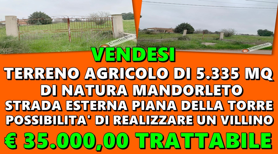 ‼️📣 Conticchio Immobiliare Vende ‼️📣: 🌳 Terreno Agricolo, di natura mandorleto, in 📍 Strada Esterna Piana della Torre, fronte strada, 🔲 di 5.335 mq circa.